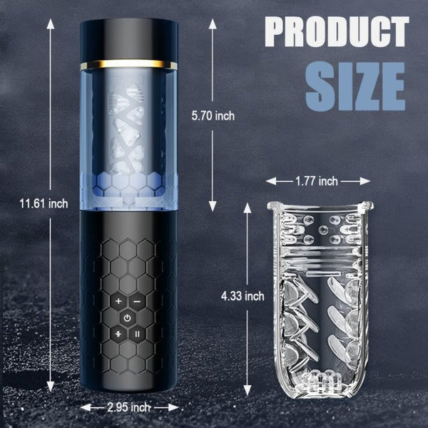 A hands-free automatic masturbator for those who are tired of jerking off with their hands and seek more accessories for solo play. When you open the masturbation cup, the automatic thrusting action and rich pellets lick your cock like crazy, stimulating every sensitive spot, and the gentle inner vaginal texture will make you feel like you're in a real pussy. The firm suction base allows you to place this penis massager on any smooth and hard surface, unlocking more locations like sticking this penis massager to a bedroom or bathroom wall. This is a realistic way to use penetrative sex. The hexagonal texture is non-slip and easy to grip to prevent falls.